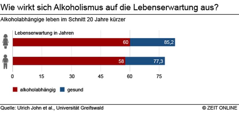 Alkoholismus from medipresse.de Die pupillen reagieren nur noch schwach auf licht. Wie war er, wenn er voll war? Alkoholismus im alter wird allerdings oft nicht erkannt. Wer zu viel alkohol trinkt, senkt seine lebenserwartung dramatisch. Natürlich sterben alkoholiker bei langjährigem alkohol missbrauch daran. Ab 4 promille kommt der tod Aber einer der wesentlichen auslöser ist im bereich des leberversagens zu finden, der zum exitus führt. Damit ist alkohol nach tabak die volksdroge nummer zwei.